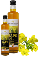 Das kalt gepresste pramoleum Rapsöl ist durch den hohen Anteil an ungesättigten Fettsäuren (> 90 %) und dem besonders guten Verhältnis von Omega-3 und Omega-6-Fettsäuren ein besonders hochwertiges Lebensmittel. Am besten zum Verfeinern von Suppen, Aufstrichen oder ganz klassisch für eine Salatmarinade verwenden.